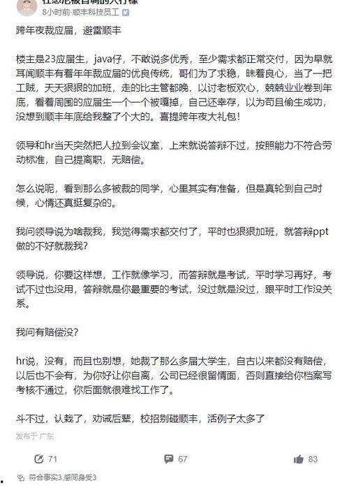 最近在网上看到一个超级劲爆的消息,关于顺丰员工的工资情况,简直让人大开眼界!你知道吗,顺丰可是快递界的巨头,员工们的工资待遇自然也是大家关注的焦点。今天,就让我带你一起揭秘顺丰员工最新爆料的工资情况,看看他们到底是不是传说中的“金领”呢?